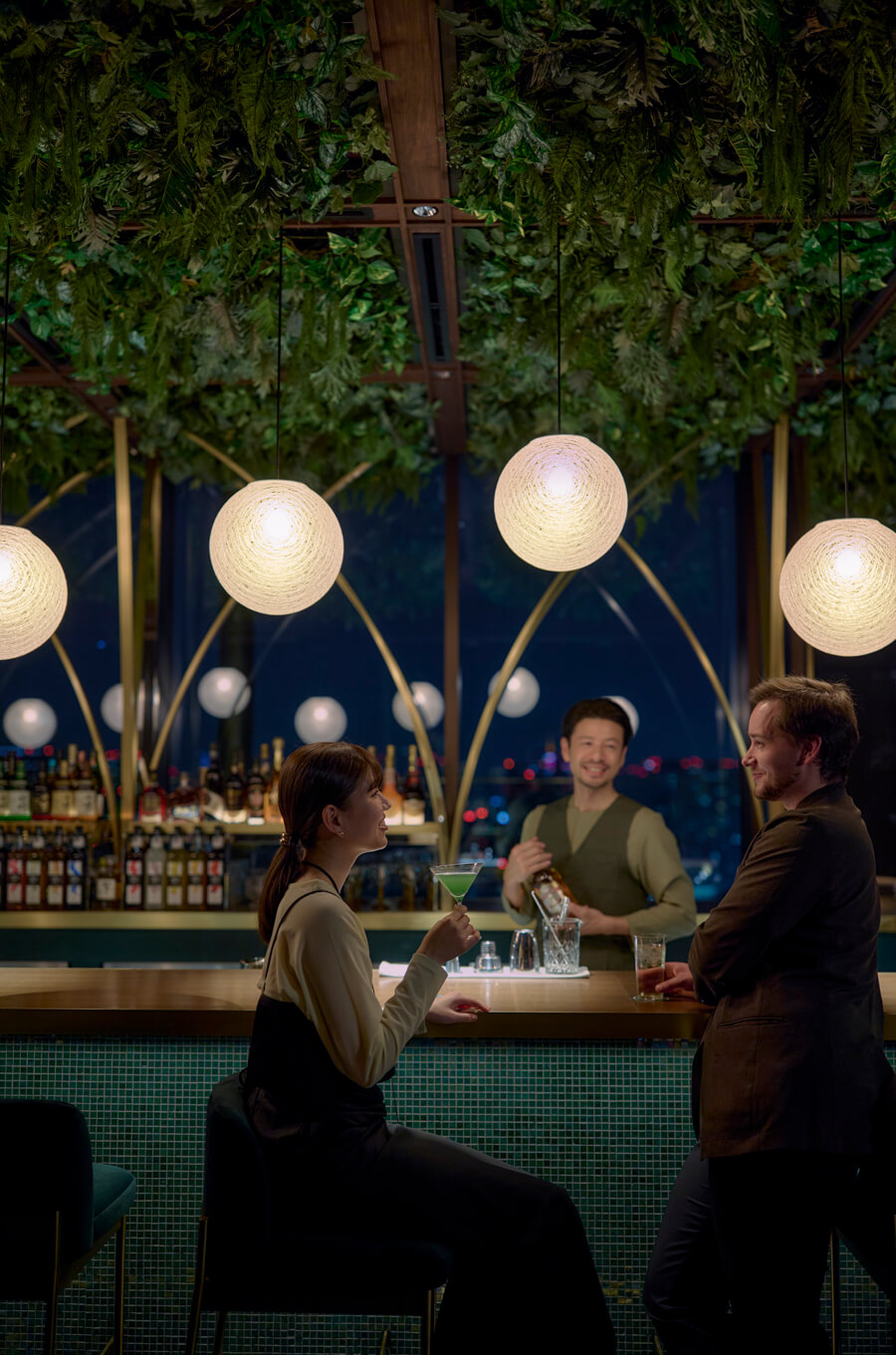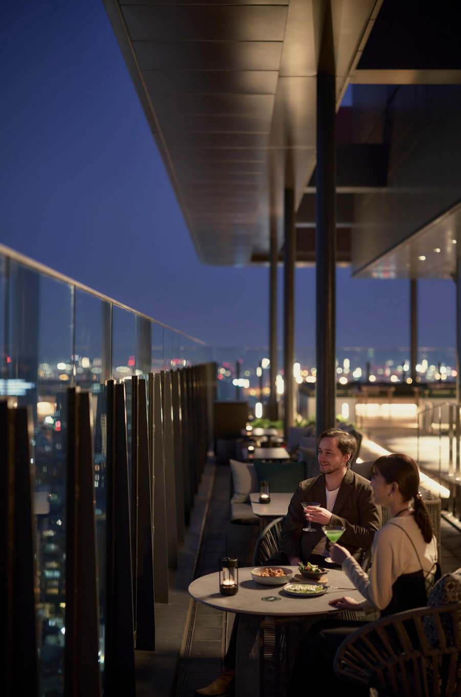 大自然の中で語らうような心躍る安らぎの時間を楽しむルーフトップバー。
